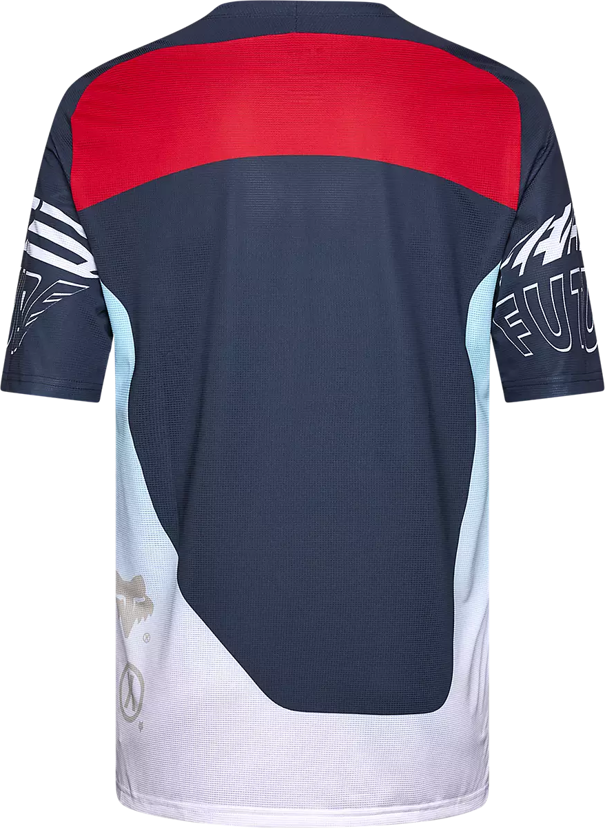 Elevated fabrics, patterns and color blocking informed by race graphics—that's Elevated Future. When you're ripping through that gnarly overgrown trail, the Flexair Elevated Jersey is right there with you bringing some legendary Fox energy and performance to your trail exploration. It's got that sought-after Flexair breathability to keep you cool, TruDri® sweat-wicking ability to keep you dry, and construction details that'll ensure total mobility as you shred at blur speed.